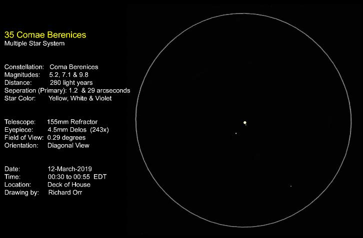 outside temperature, I caught a view of the pretty triplet-star 35 Comae Berenices.