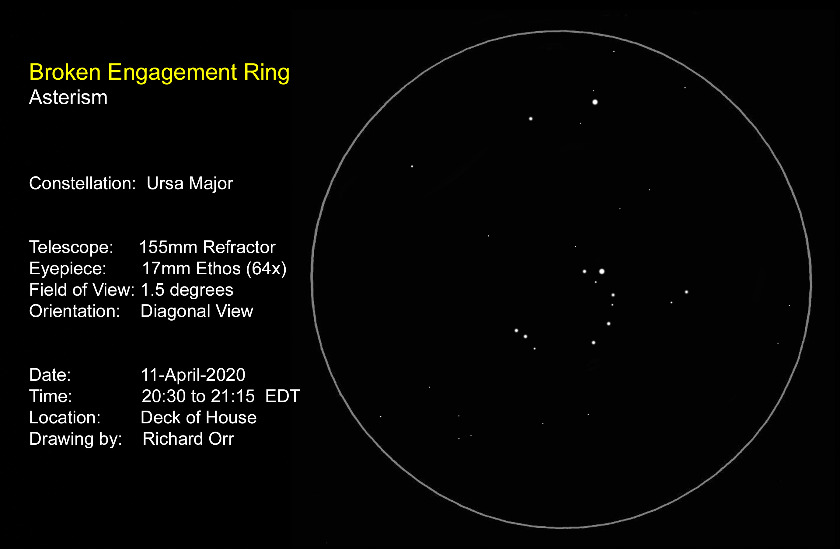 This joyful asterism is a little over one degree west from the bright star Merak (Beta Ursa
