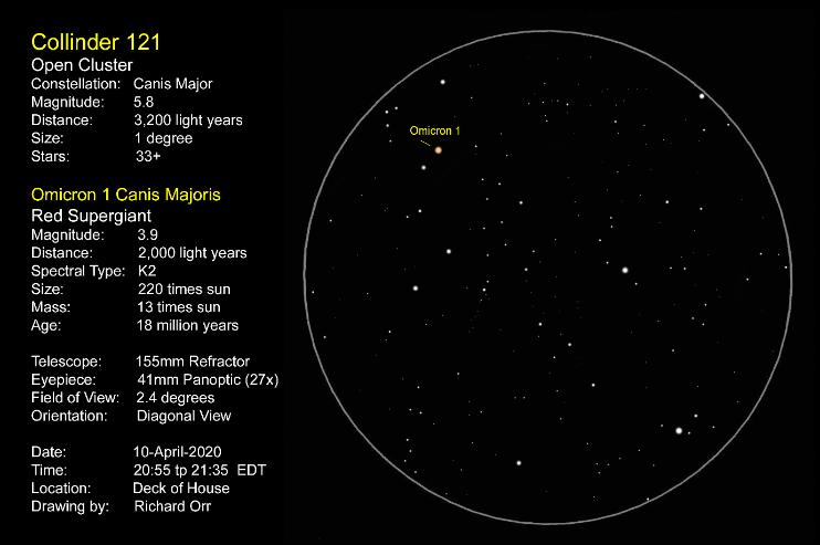 refractor, Collinder 121 covers a full degree at the center of the drawing. Don’t see it? Well