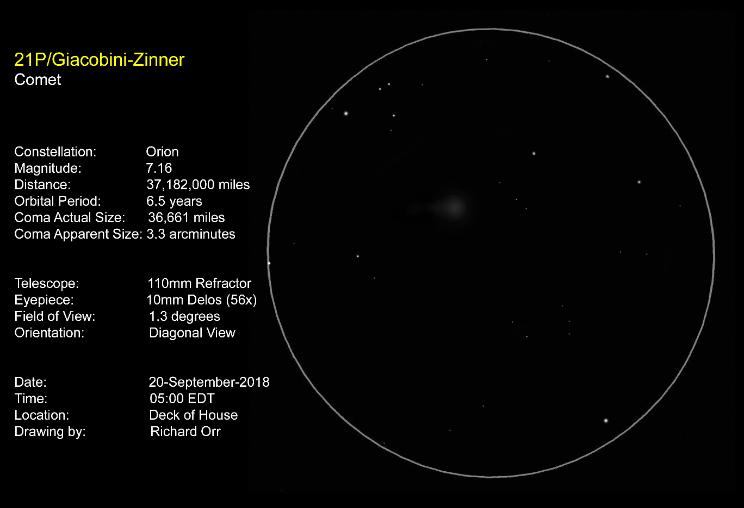 The comet 21P/Giacobini-Zinner is moving quickly (for a comet) across the sky. It
