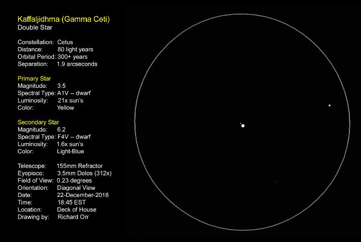 double-star Gamma Ceti that is referred to as Kaffaljidhma. If I understand it correctly, the