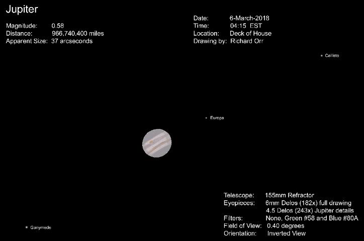 Jupiter with Great Red Spot on March 6, 2018