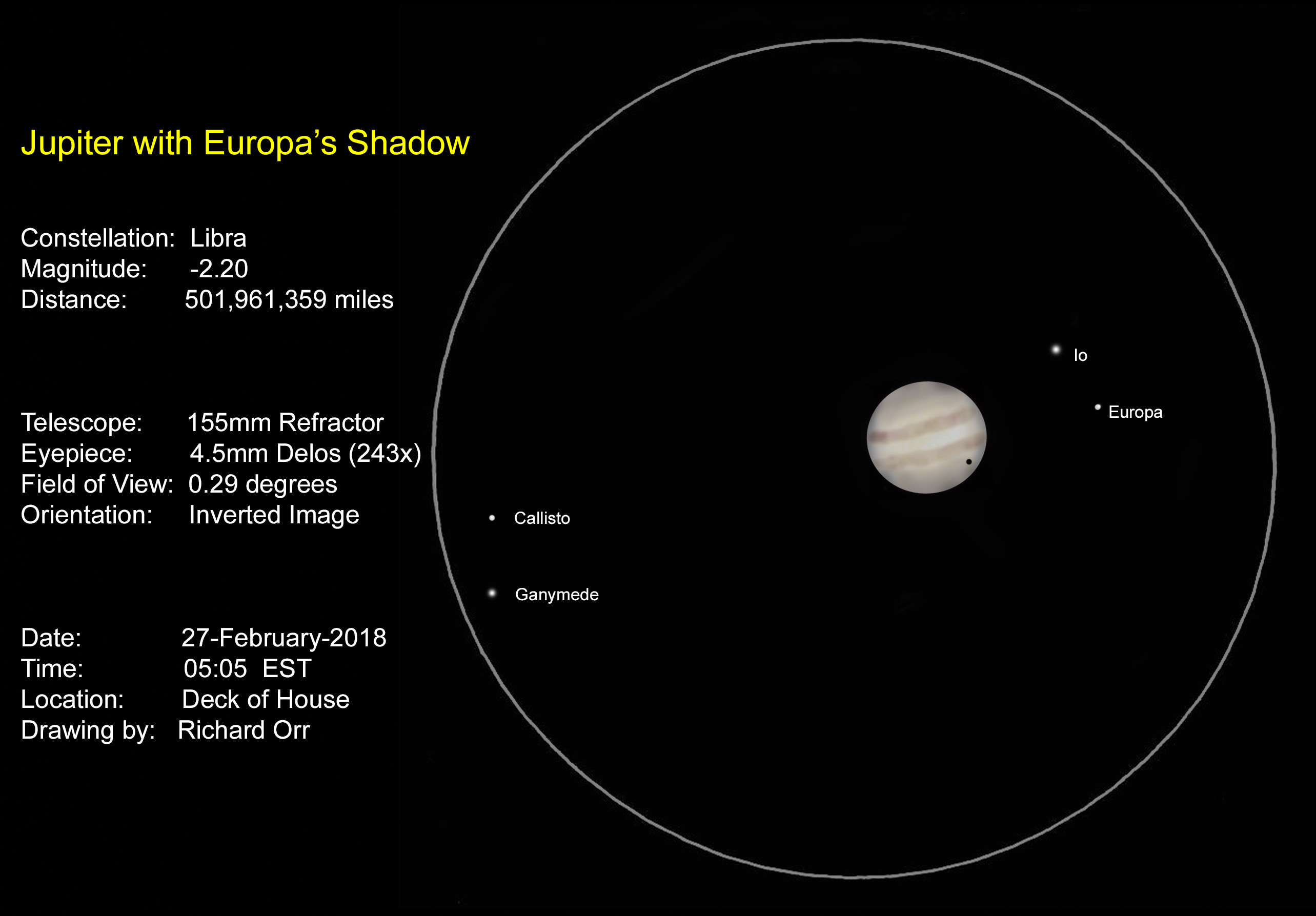 Jupiter with Europa's Shadow on February 27, 2018