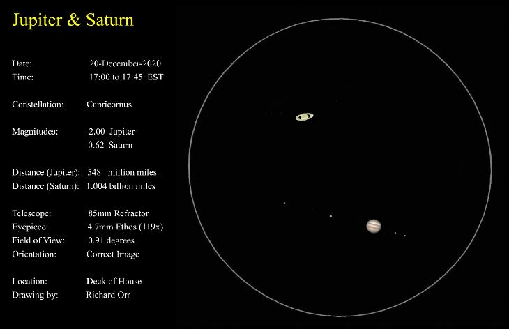 The two largest planets in our Solar System were approximately half-a-degree from each other