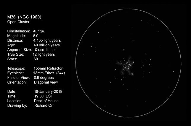 sky list in the constellation Auriga. With the unaided eye from a dark site M36,