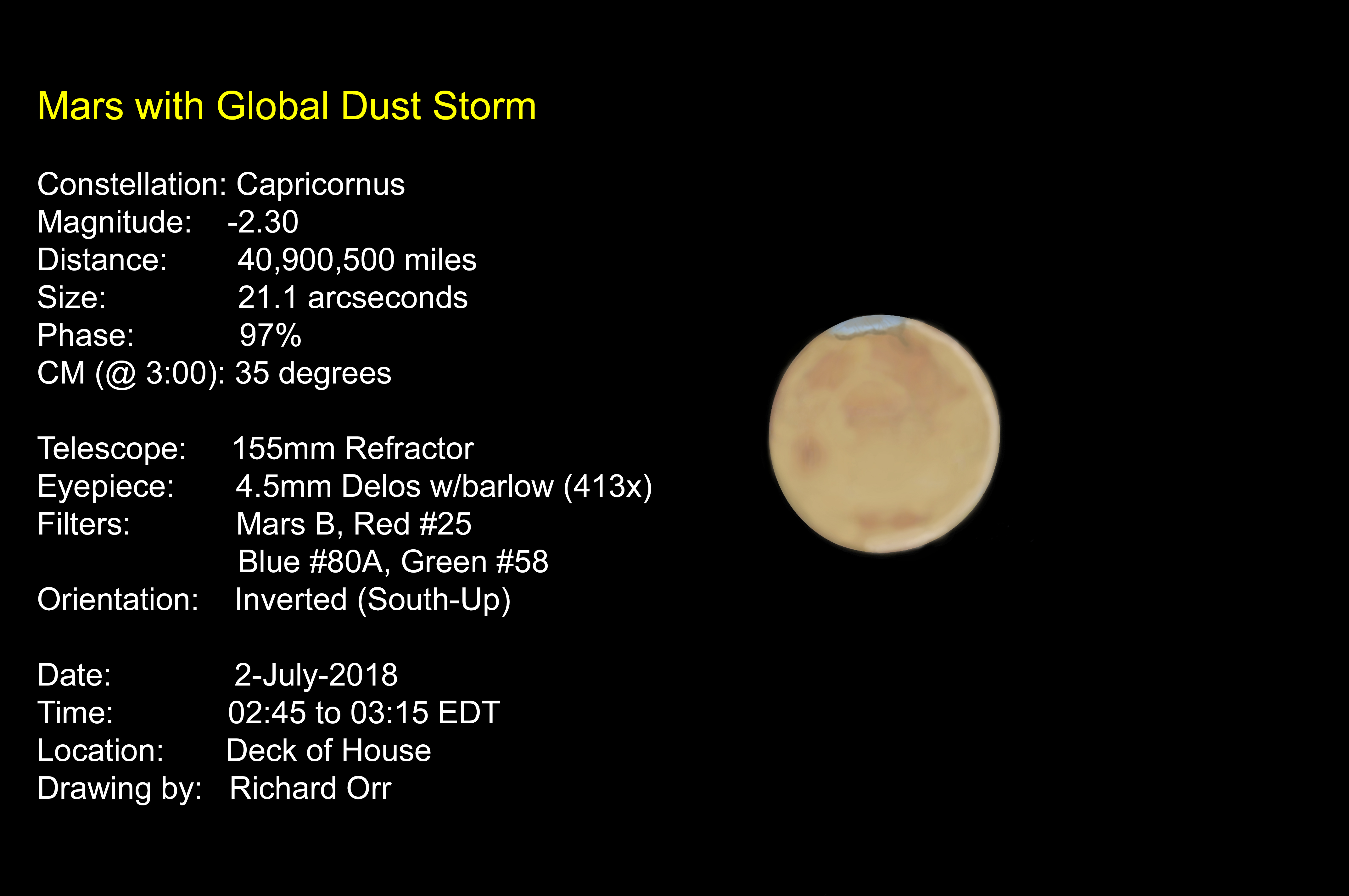 Mars & Global Dust Storm on July 2, 2018