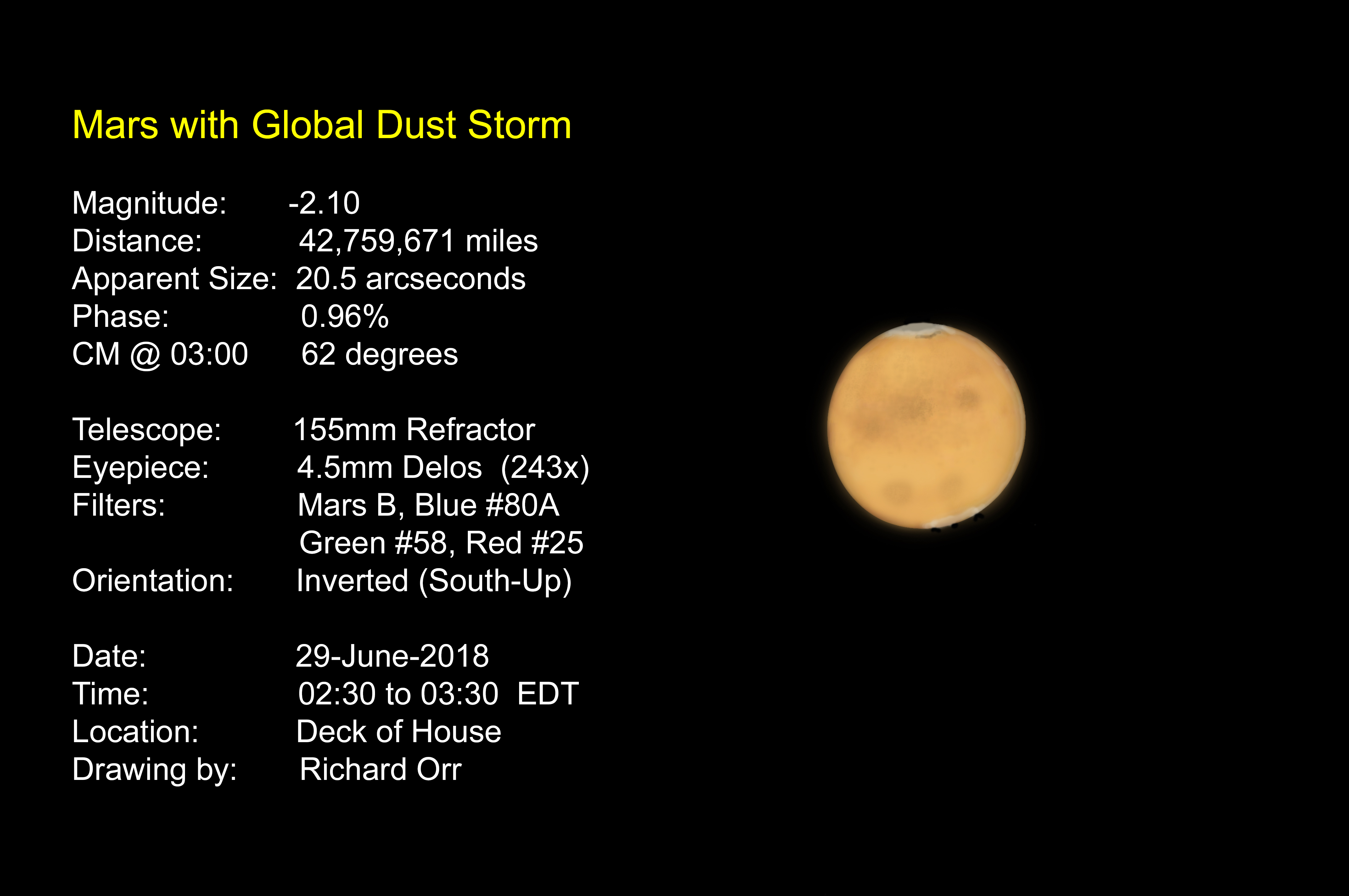 The dust storm on Mars now covers the planet. The planet’s features are muted