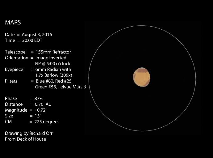Mars has now dropped to 13 arcseconds in size. Even now one can visually