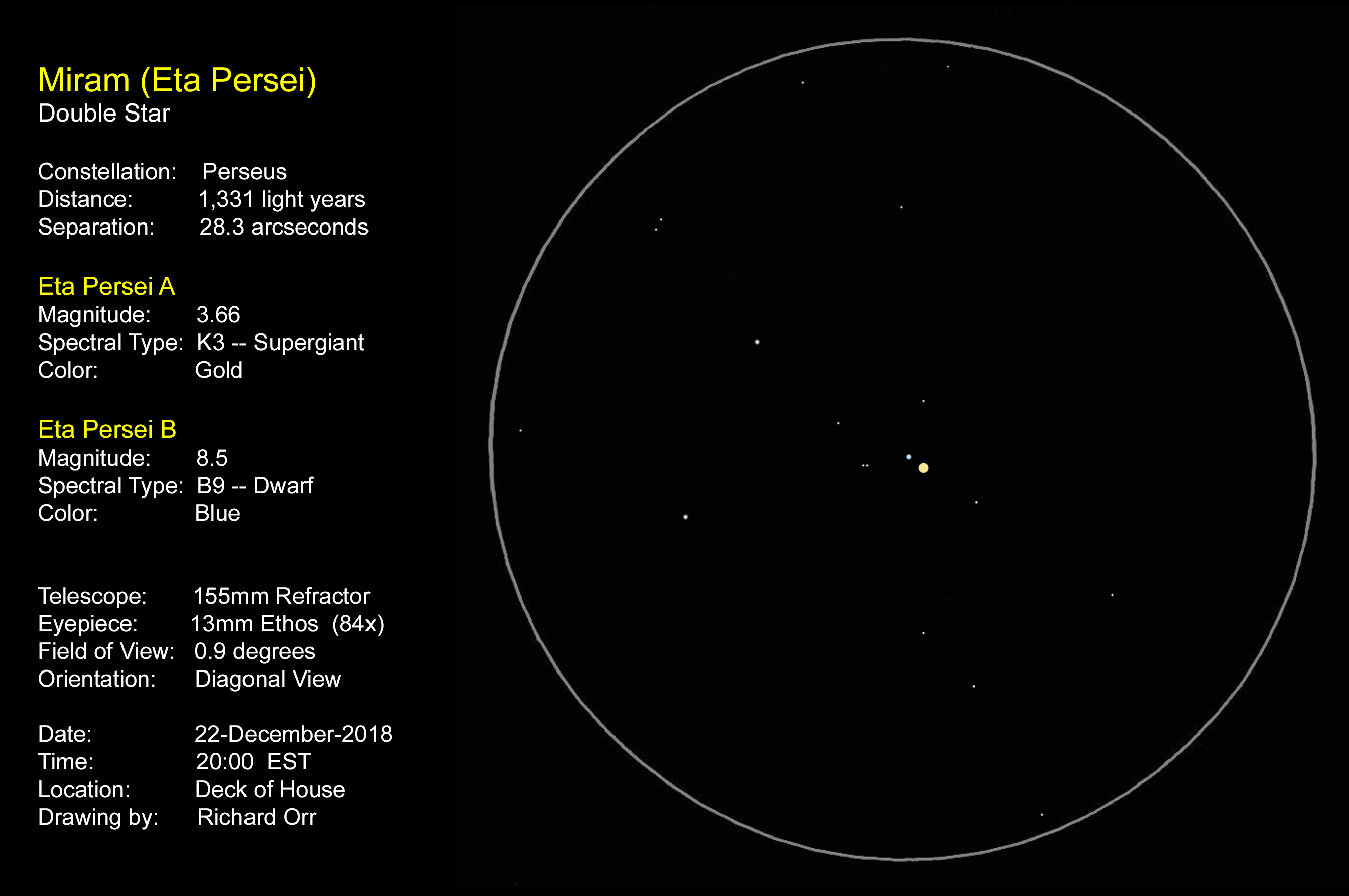 Miram (Eta Persei) has been referred to as the “Reverse Albireo”. Both stars, Albireo and