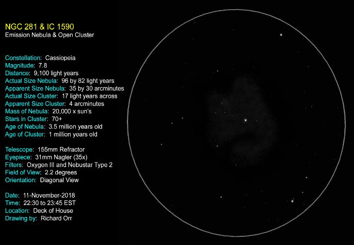 NGC 281 (Emission Nebula) and IC 1590 (Open Cluster) in Cassiopeia
