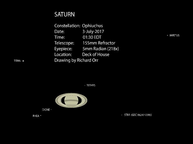 Saturn, five moons and a star on the morning of July 3, 2017.