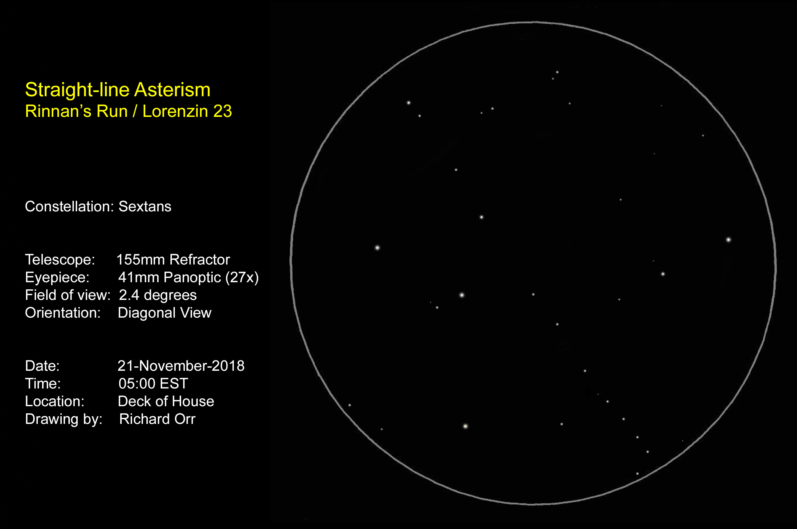 The Straight-line Asterism is just that – a chance alignment of stars. This straight line of