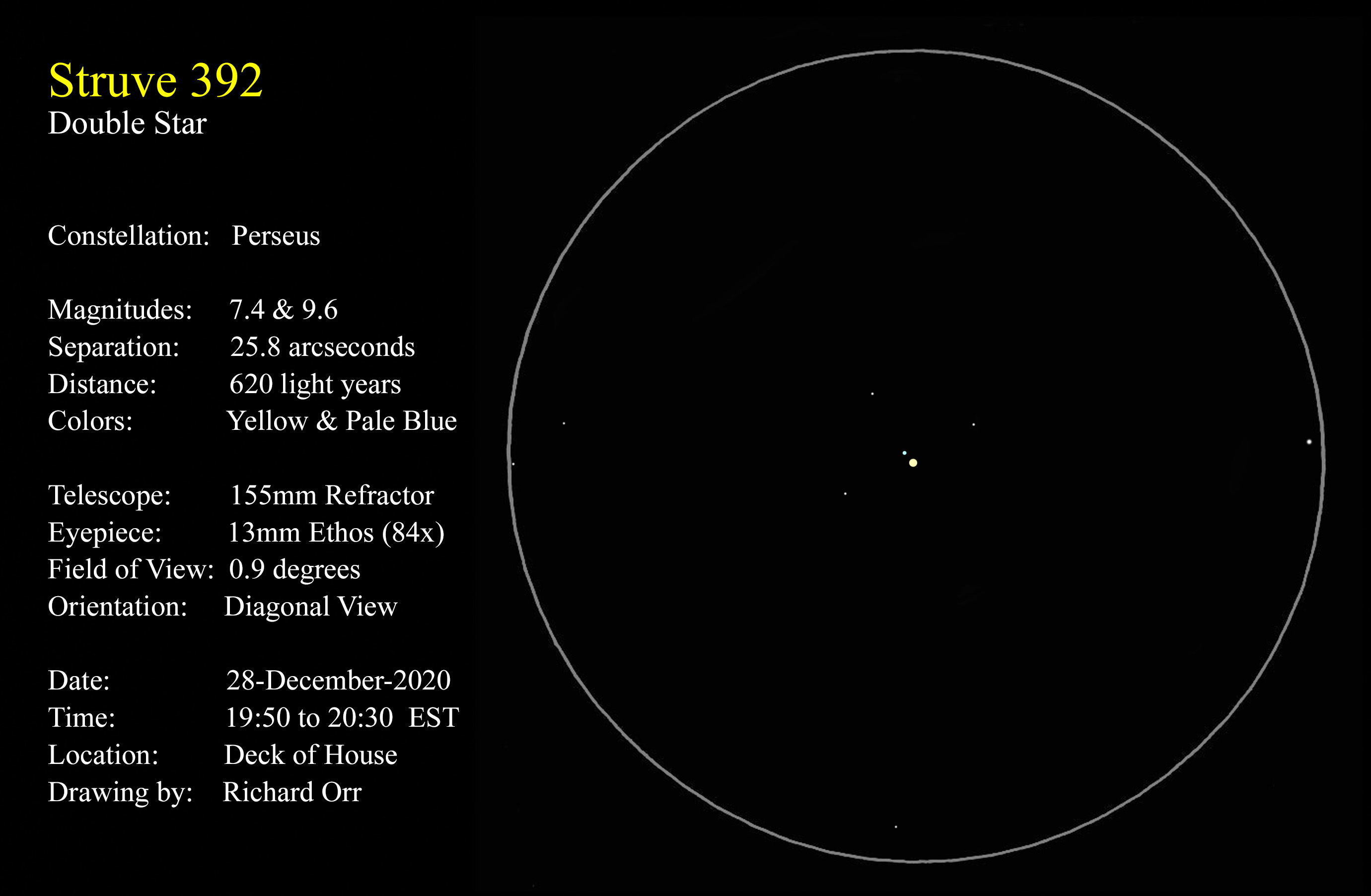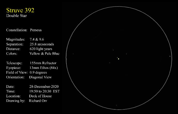 Struve 392 is easily separated in any sized telescope (25.8 arcseconds of separation).
